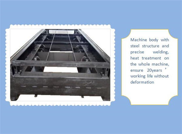 1. हमारे मशीन शरीर के साथ 8mm स्टील संरचना, 600 ℃ गर्मी उपचार, सटीक वेल्डिंग, विरूपण के बिना 20 साल का उपयोग सुनिश्चित करने के लिए।